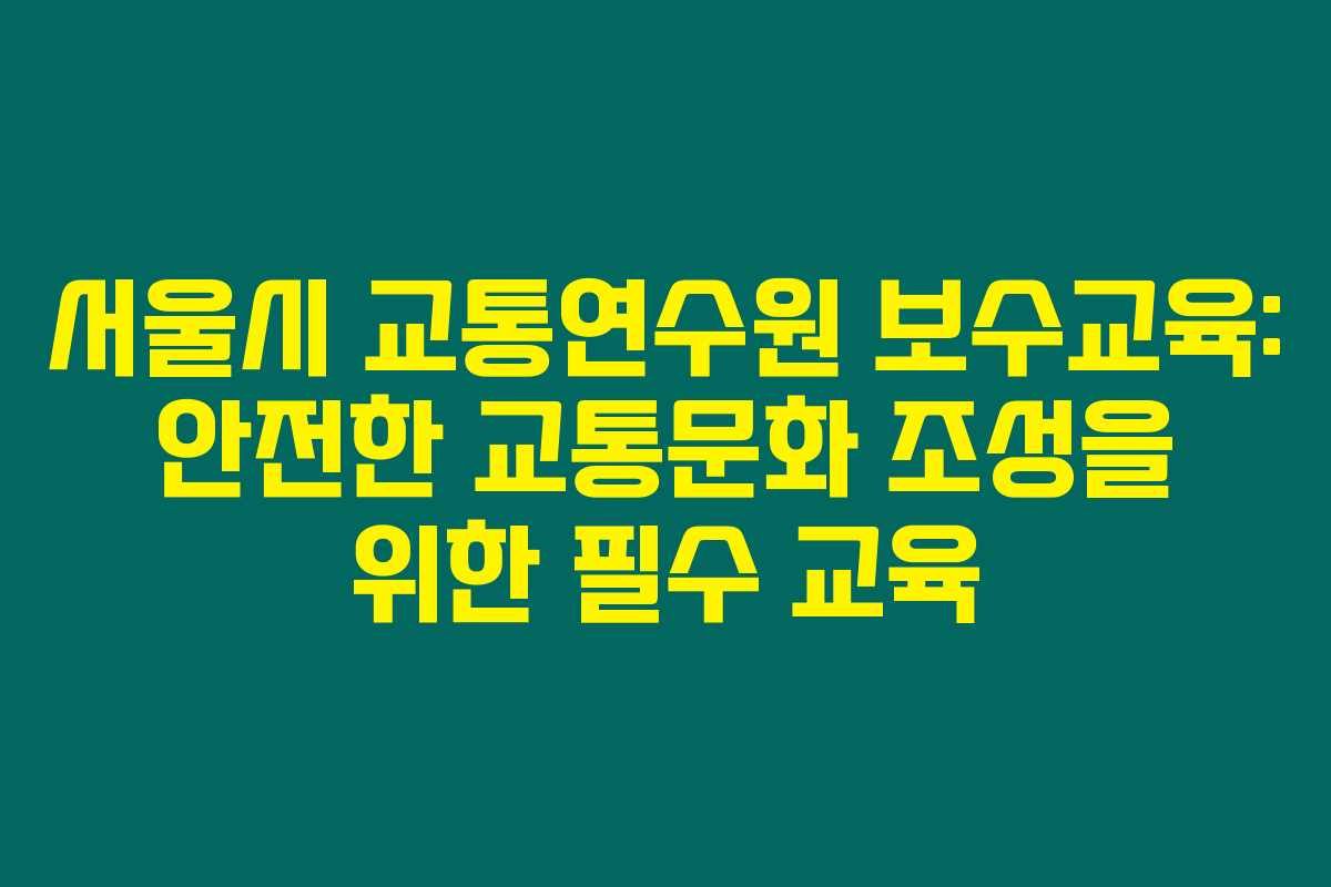 서울시 교통연수원 보수교육: 안전한 교통문화 조성을 위한 필수 교육