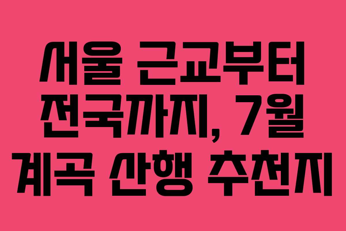 여름철 무더위를 피해 시원한 계곡에서 즐기는 산행은 많은 이들에게 인기 있는 여름철 활동입니다. 이번 글에서는 서울 근교부터 전국적으로 추천할 만한 7월의 계곡 산행지를 소개합니다. 자연의 아름다움과 신선한 공기를 느끼며 여름을 시원하게 즐겨보세요.