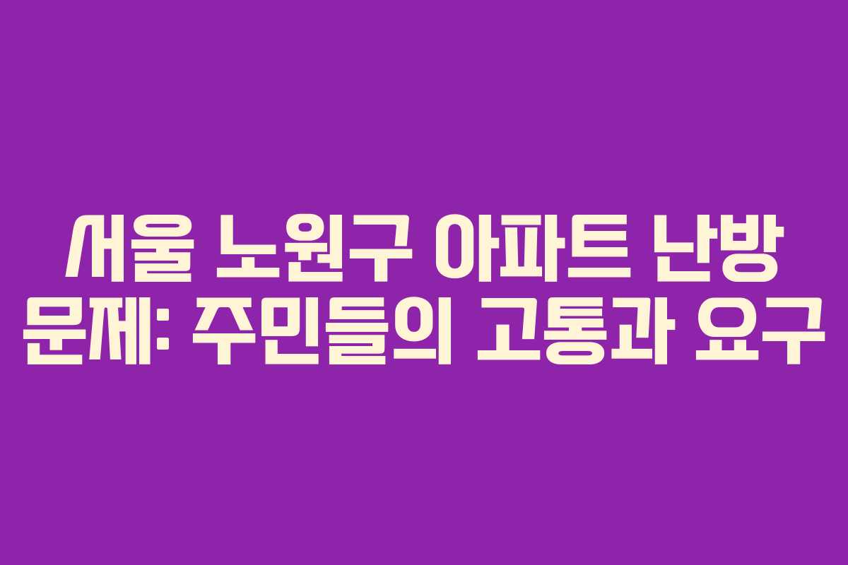 서울시 노원구 중계동에 위치한 경남 롯데 상아아파트 주민들이 심각한 난방 문제로 어려움을 겪고 있습니다. 21세기 문명국가에서 난방이 되지 않는 아파트에 거주하는 것은 상상하기 어려운 현실입니다. 이 글에서는 주민들이 겪고 있는 문제와 그 해결을 위한 요구사항을 정리해 보겠습니다.