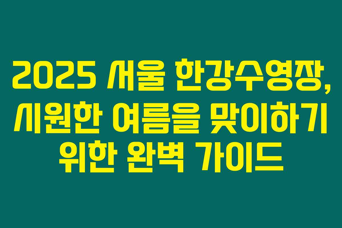 2025 서울 한강수영장, 시원한 여름을 맞이하기 위한 완벽 가이드