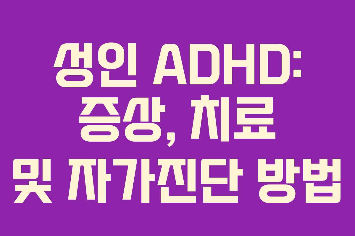 답변: 성인 ADHD는 전문의와의 상담 및 종합심리검사를 통해 진단됩니다.