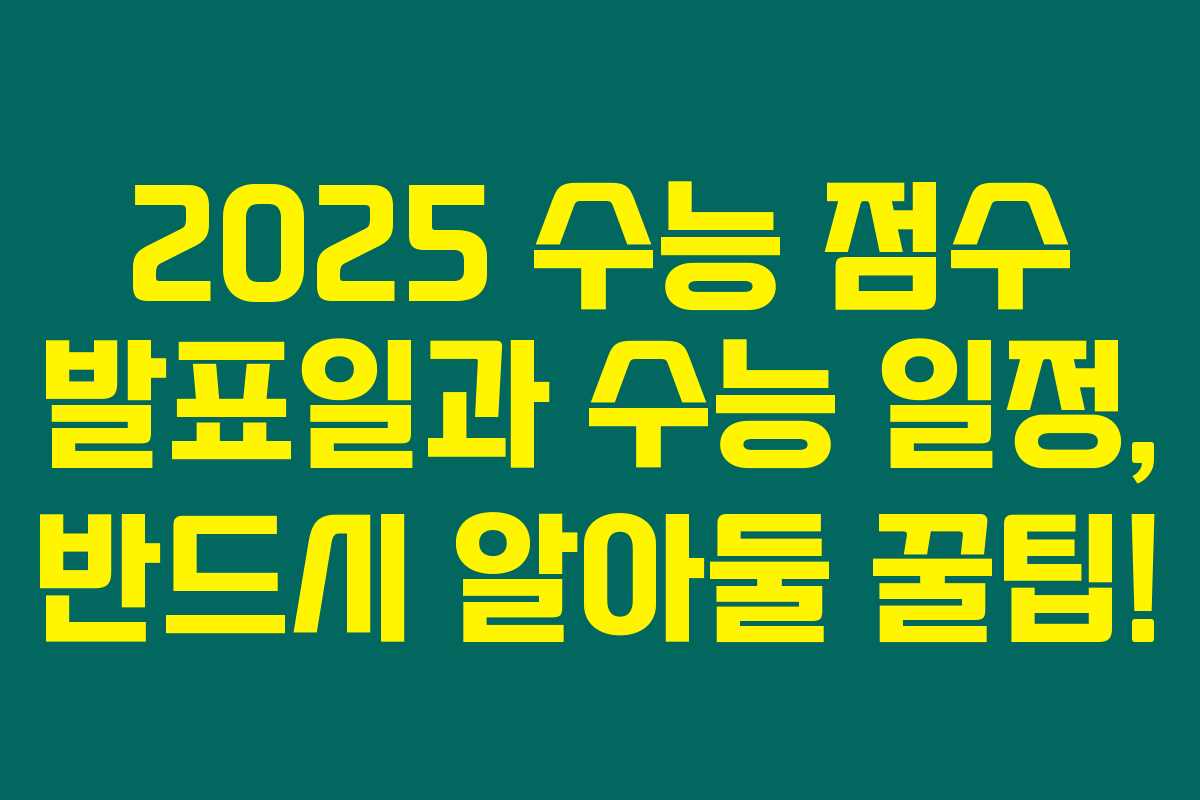 2025 수능 점수 발표일이 다가오고 있어요. 수능 준비 중이라면, 수험생 여러분이 궁금해하는 점수 발표일과 수능 일정은 필수 정보랍니다. 만약 수능 점수 발표 준비로 신경이 곤두서 있다면, 아래를 읽어보시면 필요한 모든 정보를 빠짐없이 확인할 수 있습니다. 특히 점수 발표는 치열한 경쟁 속에서 자신에게 맞는 대학을 선택하는 결정적인 날이니 잘 준비해두셔야 해요!