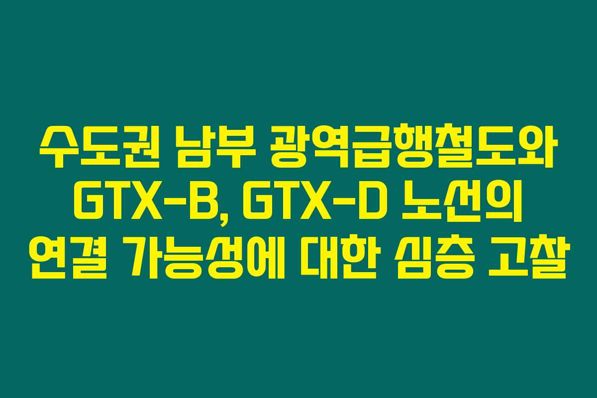 제가 알아본 바로는, 수도권 남부 광역급행철도인 GTX-B 노선과 GTX-D 노선은 서로 연계될 가능성이 매우 큽니다. 서울시는 남부지역의 교통 문제를 해결하기 위해 남부 광역급행철도를 추진하고 있으며, GTX-D 또한 점차 구체화되고 있는 상황입니다. 아래를 읽어보시면 이 노선들이 어떤 방식으로 연결될지에 대한 여러 가지 시나리오와 현황을 자세히 살펴볼 수 있습니다.