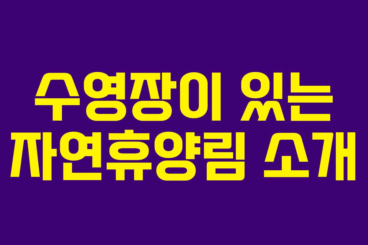 충청도에는 수영장과 물놀이 시설이 갖춰진 여러 자연휴양림이 있습니다. 이번 글에서는 이 지역의 자연휴양림에 대해 자세히 살펴보겠습니다.