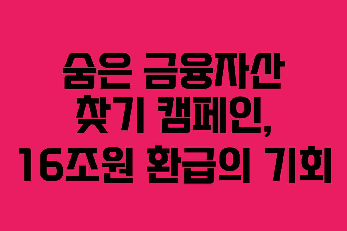 최근 정부와 금융권이 공동으로 추진하는 ‘숨은 금융자산 찾기’ 캠페인이 시작되었습니다. 이번 캠페인은 고객이 찾아가지 않은 16조 원 규모의 금융자산을 환급하기 위한 노력으로, 소비자들에게 중요한 기회를 제공하고 있습니다.
