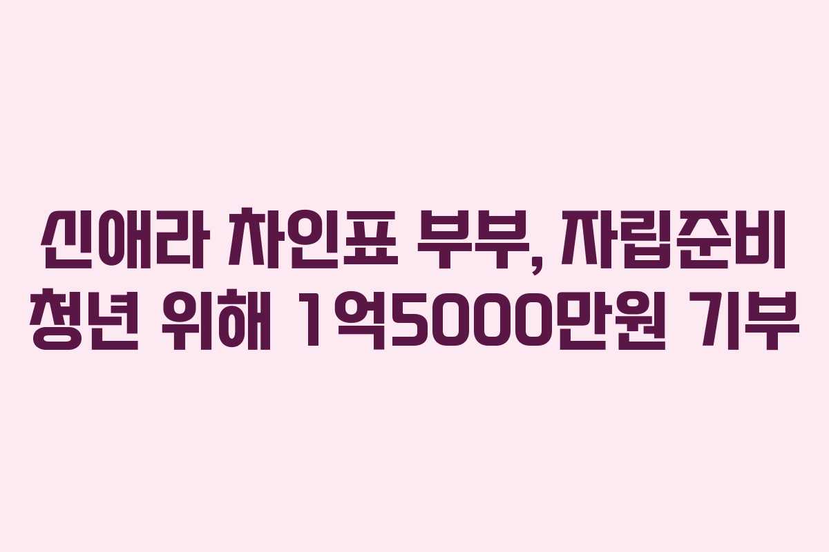 배우 신애라와 차인표 부부가 보육시설 아동 및 자립준비 청년을 위해 1억5000만원을 기부한 사실이 알려졌습니다. 이들은 자립을 준비하는 청년들과 미혼모 가정을 돕기 위해 지속적으로 후원 활동을 펼쳐오고 있습니다.