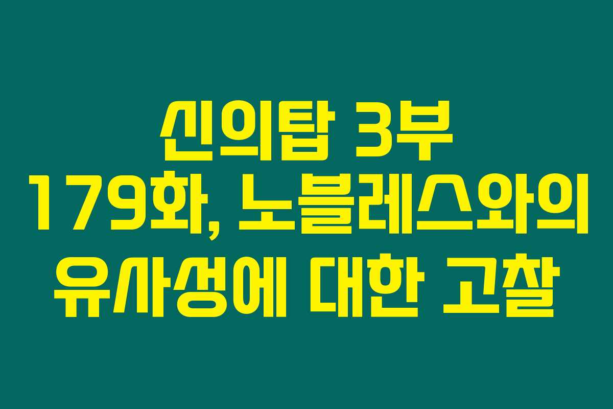 네이버 웹툰 신의탑 3부 179화가 공개되면서 독자들 사이에서 여러 가지 의견이 쏟아지고 있어요. 특히, 노블레스의 영향이 느껴진다는 의견이 많습니다. 그 이유와 현재 화의 전개를 살펴보면 정말 흥미진진한 이야기가 펼쳐지는데요, 아래를 읽어보시면 더 많은 궁금증이 해소될 거예요!