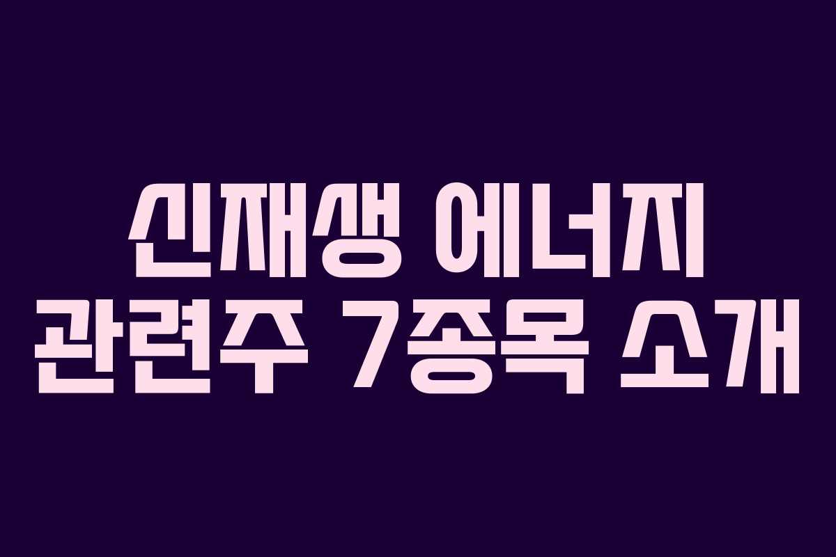 신재생 에너지는 지속 가능한 에너지원으로, 태양광, 풍력, 수소 등 다양한 형태의 에너지를 포함합니다. 이러한 신재생 에너지의 중요성이 높아짐에 따라, 관련 기업들의 주식에도 관심이 가고 있습니다. 본문에서는 신재생 에너지와 관련된 7종목을 소개합니다.