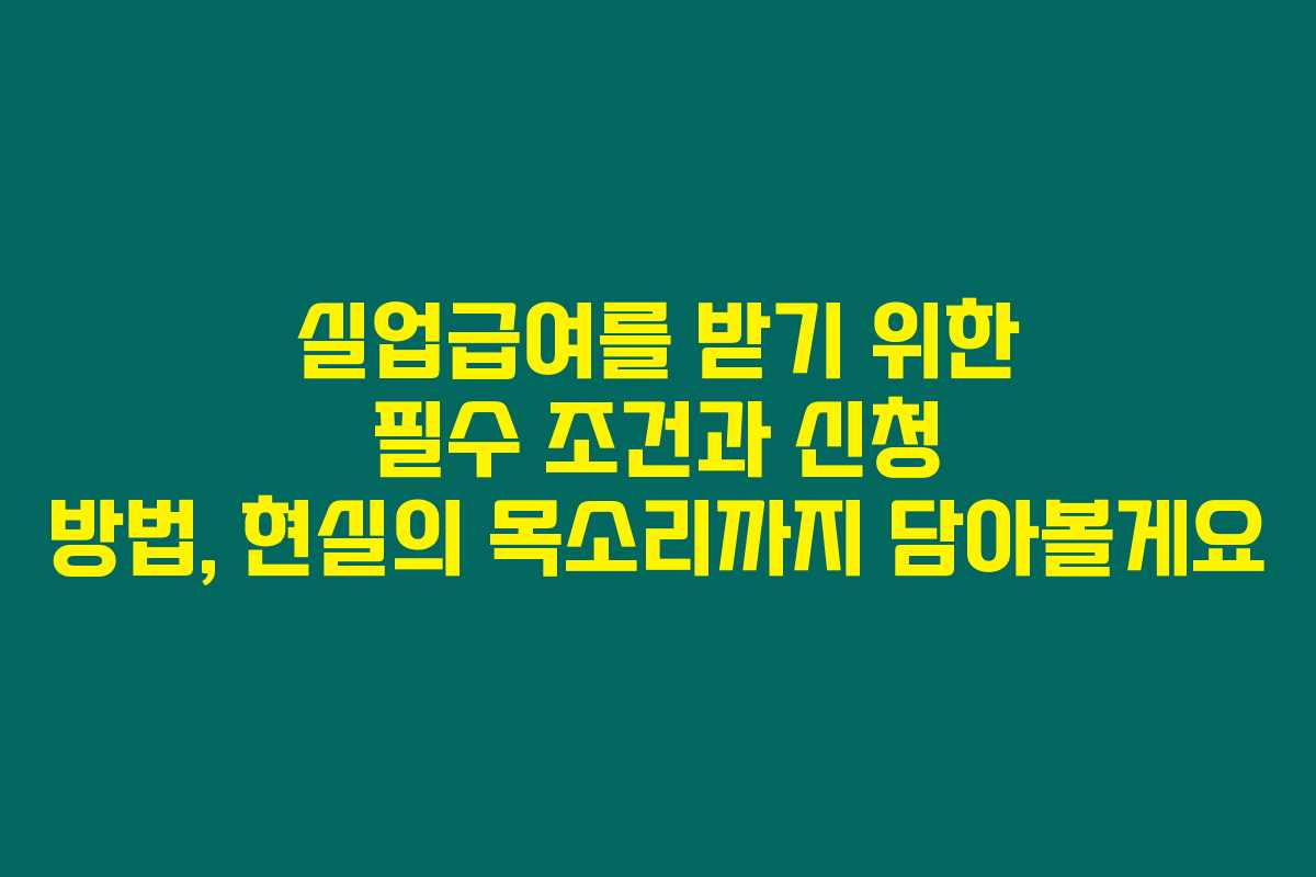 실업급여를 받기 위해서는 몇 가지 필수 조건이 있습니다. 실직 상황에서도 마음이 복잡할 수 있는데, 이러한 조건을 충족하면 정신적 부담이 좀 덜할 수 있어요. 아래의 조건을 살펴보시면 도움이 될 것입니다.