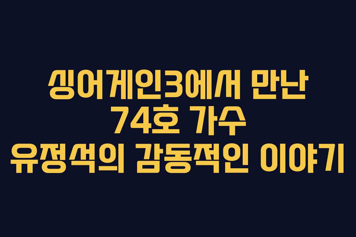 최근 방송된 ‘싱어게인3’에서 많은 시청자들이 반가운 얼굴을 만나며 감동을 받았습니다. 특히 74호 가수 유정석 님의 무대는 많은 이들에게 깊은 인상을 남겼습니다.