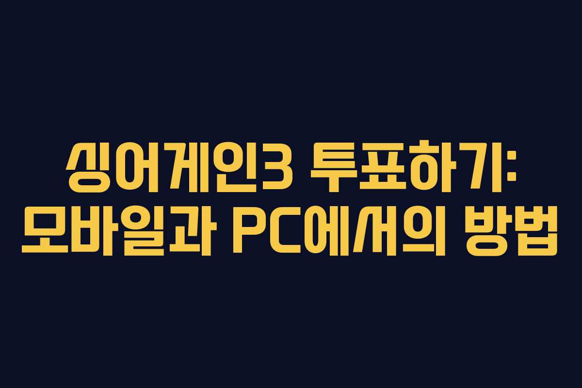 싱어게인3의 투표 방법에 대해 알아보겠습니다. 이번 시즌에서도 많은 가수들이 참여하며, 여러분의 소중한 한 표가 필요합니다. 모바일과 PC에서의 투표 방법을 자세히 안내해 드리겠습니다.