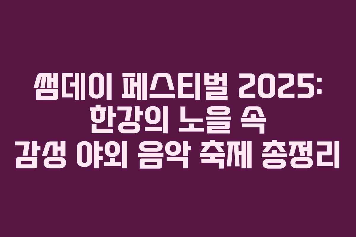 - 썸데이 페스티벌 2025는 한강의 풍경과 음악이 어우러진 대표 야외 축제이며, 라인업의 다양성으로 다양한 취향을 커버합니다. 티켓 예매 경쟁이 예상되므로, 미리 예매 채널을 파악하고 전략적으로 접근하는 것이 중요합니다. 한강의 가을 하늘 아래에서 잊지 못할 음악적 추억을 만들어 보세요.