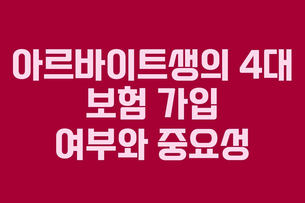아르바이트를 하는 많은 사람들은 4대 보험 가입에 대해 궁금해 합니다. 4대 보험은 국민연금, 건강보험, 고용보험, 산재보험으로 구성되어 있으며, 근로자의 안전과 복지를 위한 중요한 제도입니다.