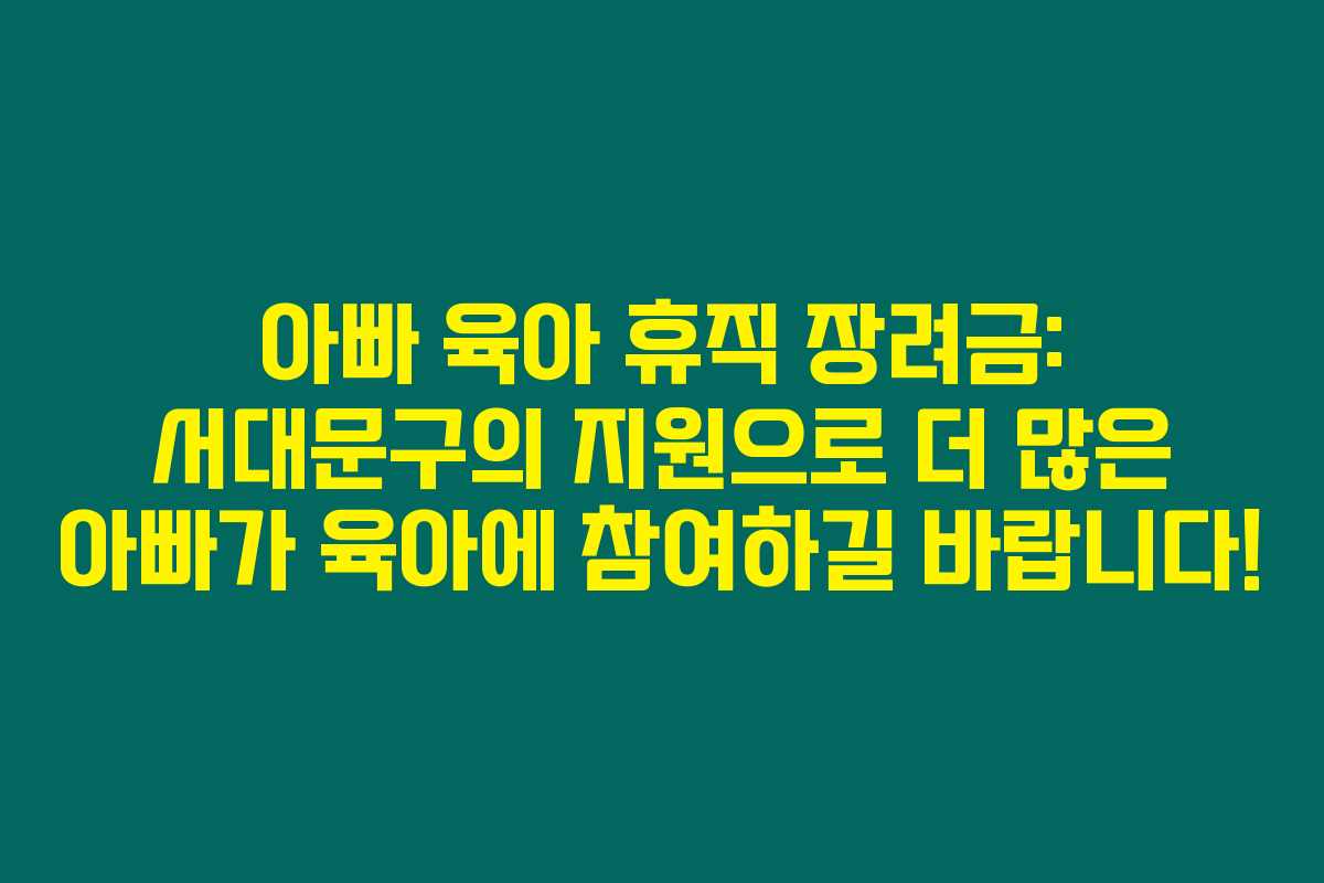 서대문구에서 제공하는 육아휴직장려금은 많은 아빠들에게 힘이 되는 제도입니다. 그렇다면 이 지원 사업의 구체적인 내용은 무엇인지 살펴볼까요?