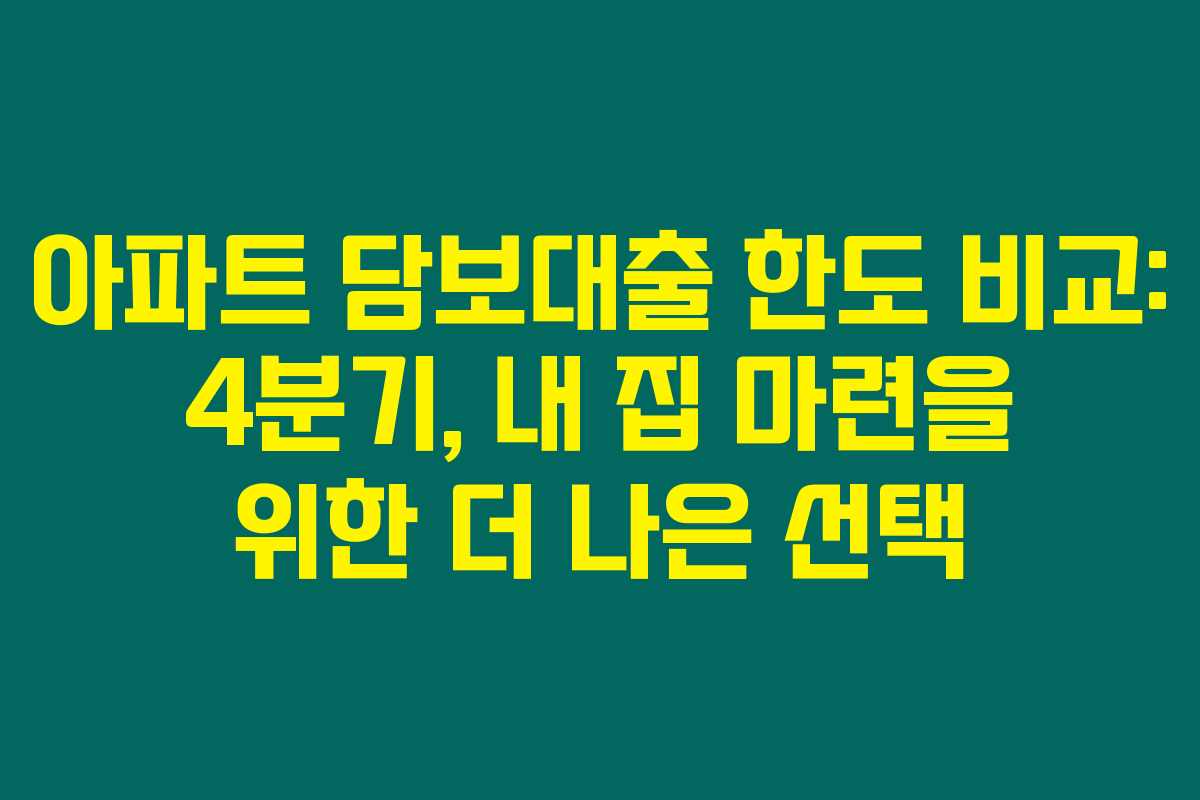 아파트 담보대출 한도 비교: 4분기, 내 집 마련을 위한 더 나은 선택