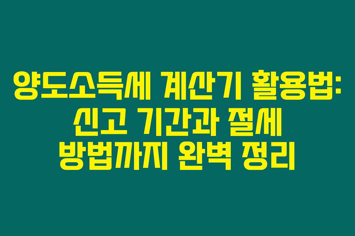- 2. 양도소득세 계산기 사용 시 주의할 점은 무엇인가요?