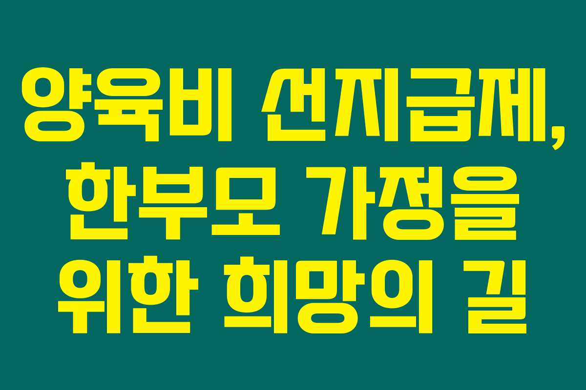 양육비 선지급제는 정부가 미리 양육비를 지급하고, 비양육자가 이를 상환하는 구조입니다. 이런 방식으로 한부모 가정의 재정적 부담을 줄입니다.