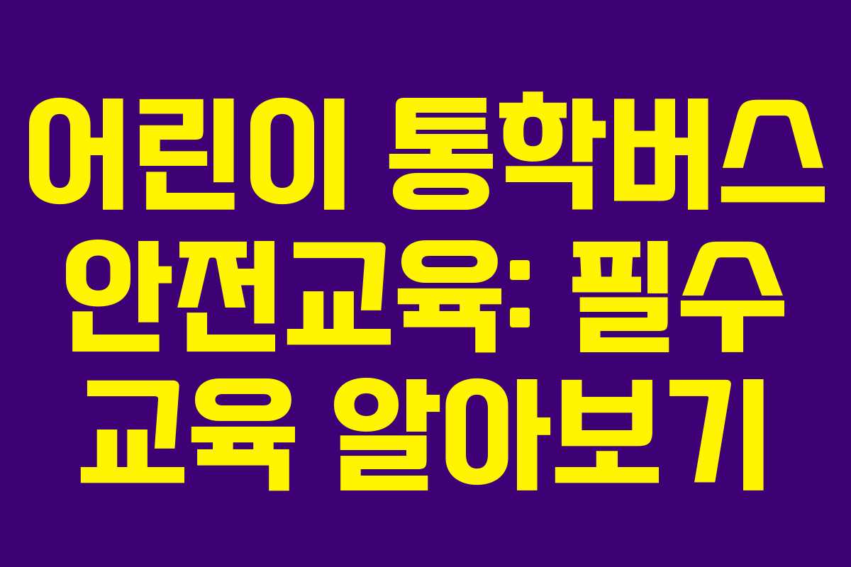 어린이 통학버스 안전교육은 어린이의 안전을 지키기 위한 필수 과정입니다. 교육을 통해 안전한 통학 환경을 조성하고, 교통사고를 예방하는 데 적극 참여하시기 바랍니다.