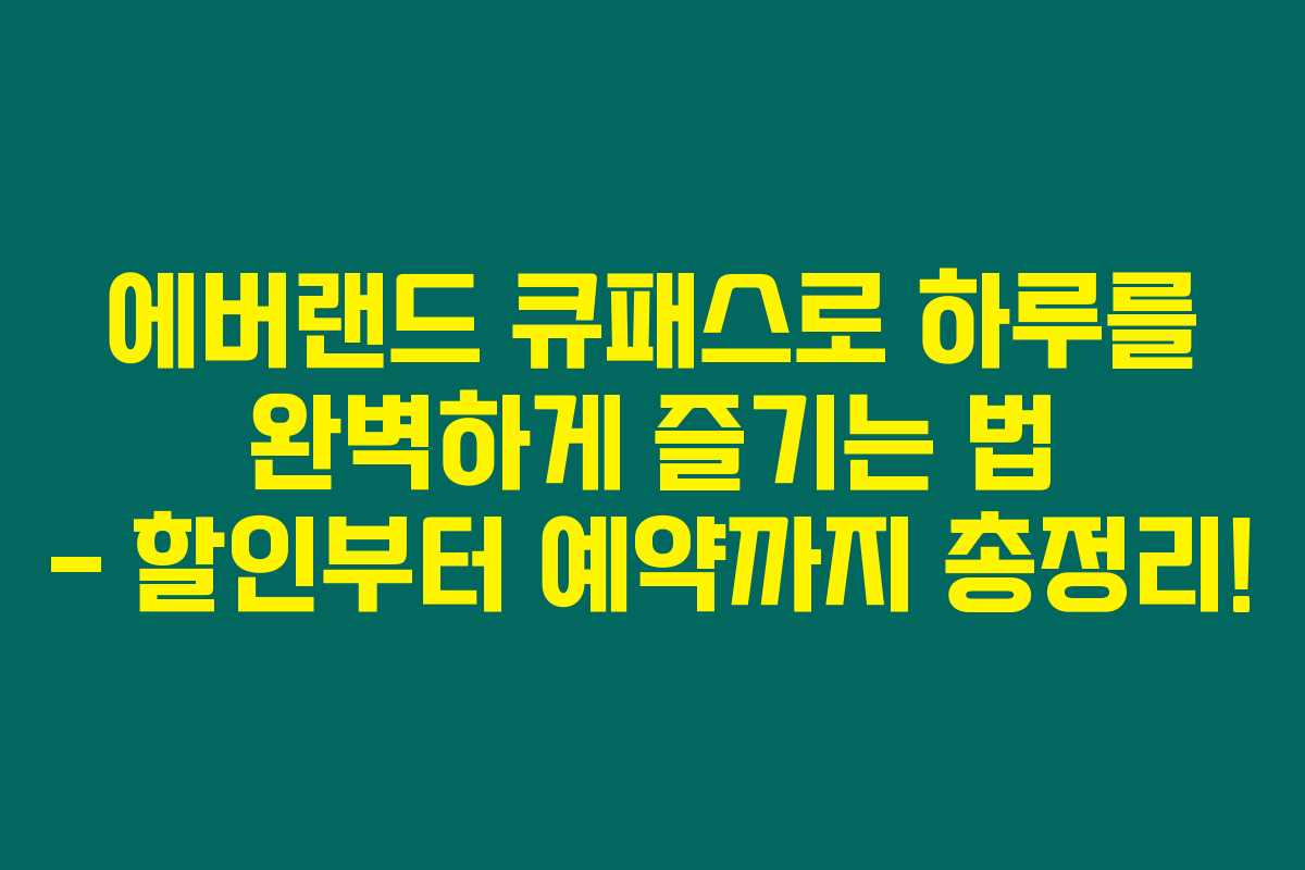 에버랜드를 방문하고 싶지만 주말과 성수기에는 대기 시간이 너무 길어서 걱정이라면 이 글을 꼭 읽어보세요. 에버랜드의 큐패스(Q-PASS)로 당신의 소중한 시간을 아껴보세요. 이 가이드를 통해 큐패스의 가격, 할인 방법, 구매 및 예약 정보를 알차게 정리해 드릴게요. 보다 즐거운 에버랜드 여행을 위해 큐패스를 활용해보세요!