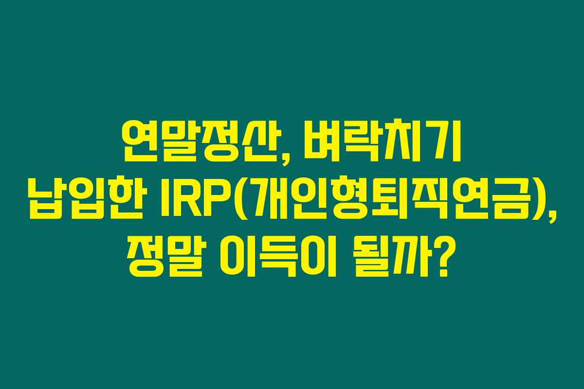 연말정산, 벼락치기 납입한 IRP(개인형퇴직연금), 정말 이득이 될까?