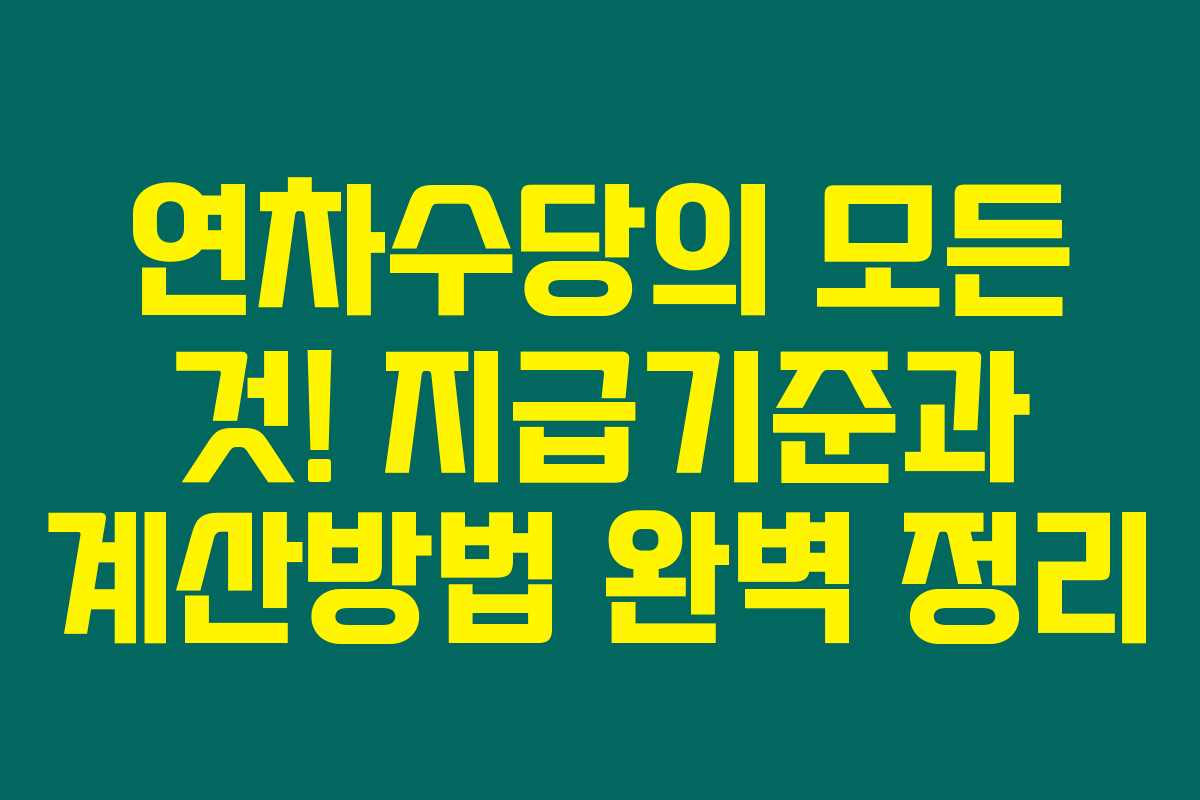 제가 알아본 바로는, 많은 직장인들이 연차수당의 개념을 명확히 이해하지 못하고 있더라고요. 연차는 직장인에게 주어지는 유급 휴가이지만, 이 연차를 제대로 활용하지 않으면 수당으로 지급받을 수 있는 기회를 놓칠 수 있습니다. 아래를 읽어보시면 연차수당의 지급기준과 계산방법, 그리고 이러한 수당이 어떤 상황에서 발생하는지에 대해 깊이 있는 정보를 얻으실 수 있을 거예요.