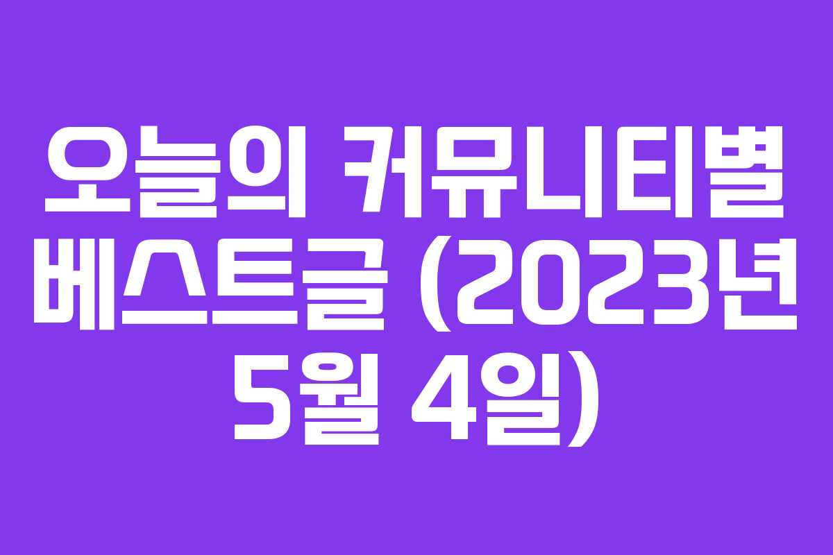 오늘은 다양한 커뮤니티에서 화제가 되고 있는 베스트글을 소개합니다. 각 커뮤니티의 인기 게시물들을 통해 현재의 트렌드와 관심사를 살펴보겠습니다.