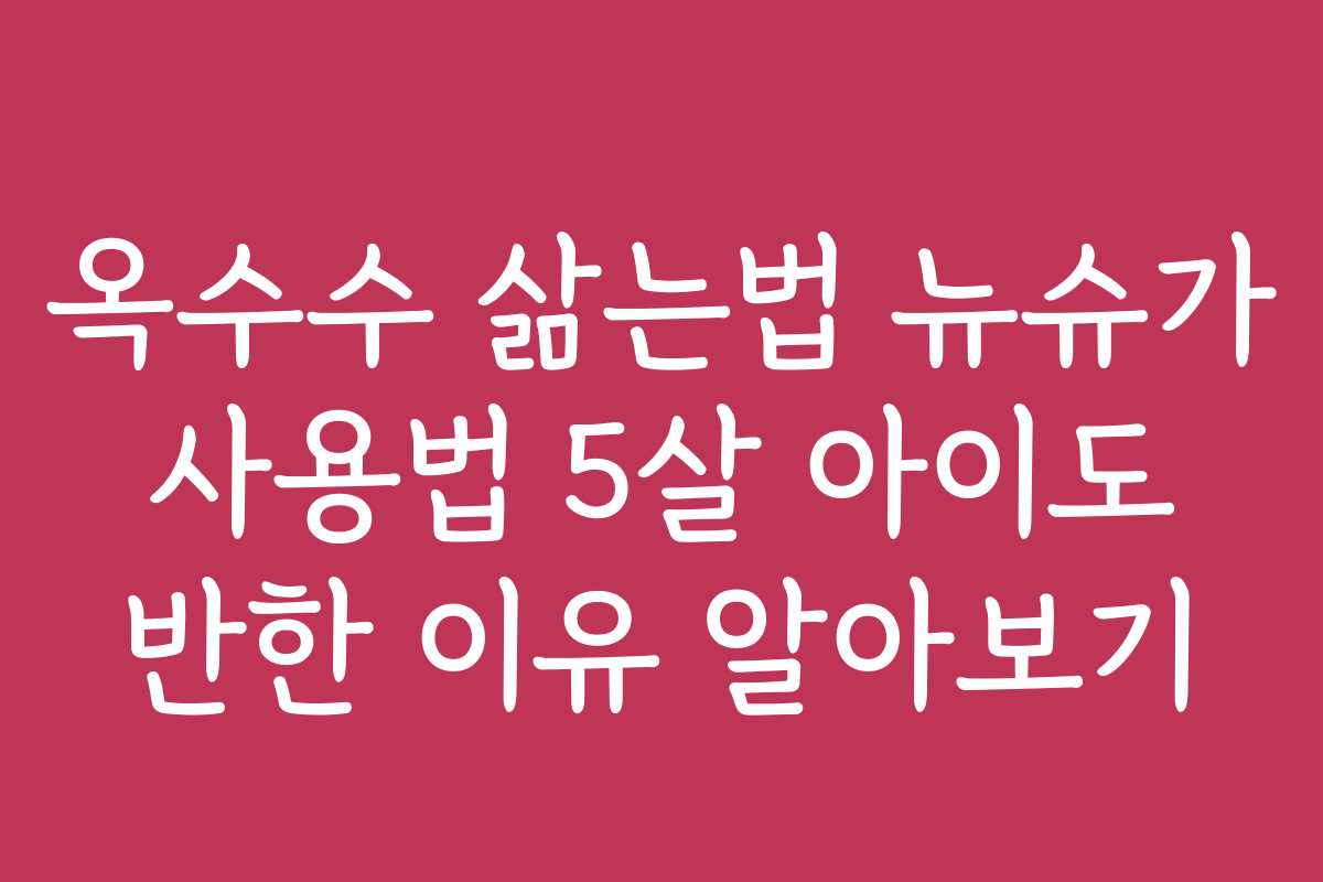 이제 옥수수를 삶는 과정과 뉴슈가 활용법에 대해 더 자세히 알아보겠습니다. 이 두 가지를 함께 활용하면 5살 아이들도 좋아할 맛있는 간식을 만들 수 있습니다.