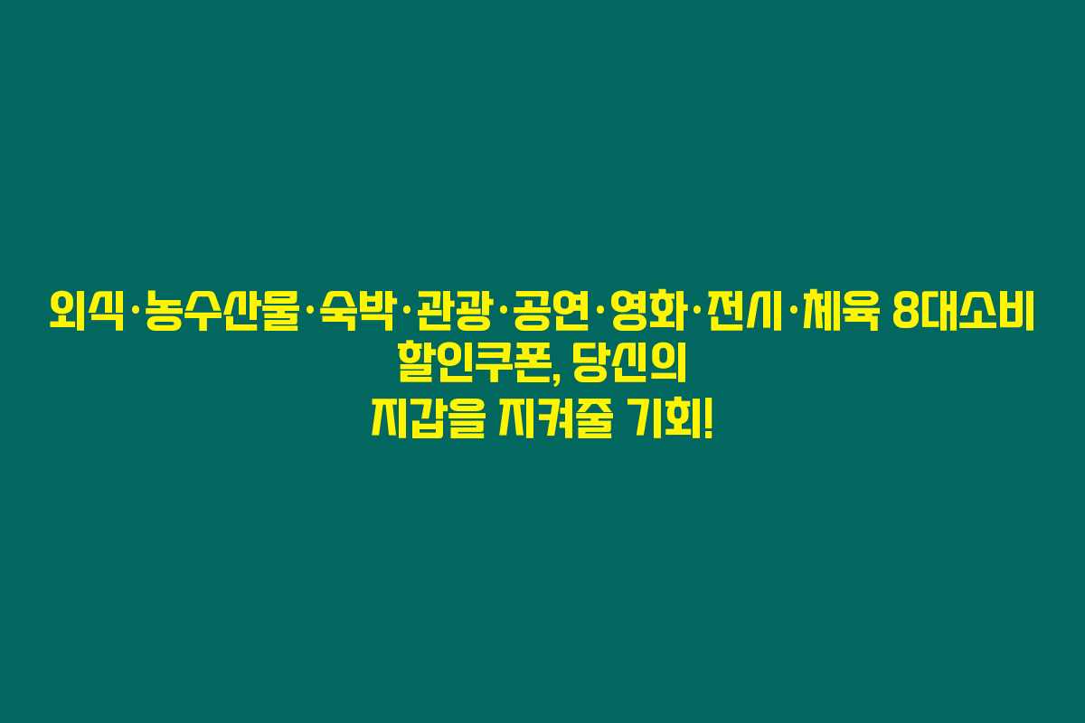 이 글을 통해서 8대소비 할인쿠폰에 대해 알아보세요. 각 쿠폰의 혜택과 사용 방법은 물론, 어떻게 소비 활성화에 도움을 줄 수 있는지를 자세히 설명할게요.