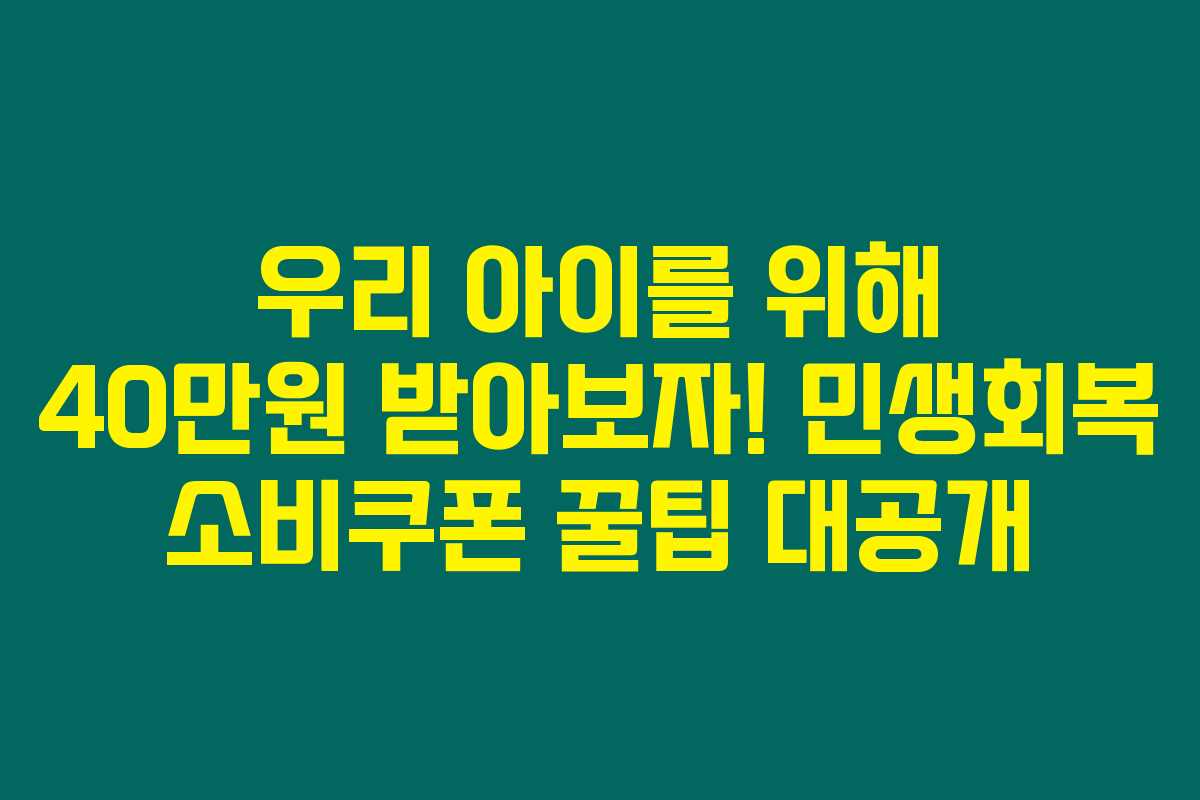 제가 직접 체크해본 바로는, 2025년 7월에 지급되는 민생회복 소비쿠폰이 우리 아이에게는 40만원이라는 큰 혜택을 가져다줄 수 있습니다. 하지만 많은 부모들이 이 기회를 놓치고 있는 것 같아요. 아래를 읽어보시면 저의 경험을 바탕으로 신청 방법부터 사용 팁까지 알차게 안내해드릴게요!