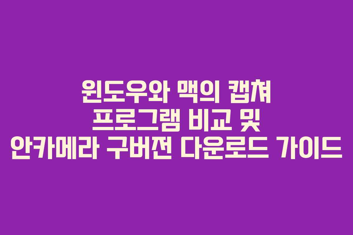 많은 사용자들이 윈도우와 맥을 모두 사용하면서 각 운영체제의 장단점을 경험하고 있습니다. 특히 기본 프로그램의 효용성에서 차이를 느끼는 경우가 많습니다. 이번 글에서는 윈도우와 맥의 캡쳐 프로그램을 비교하고, 안카메라 구버전 다운로드 방법에 대해 안내하겠습니다.