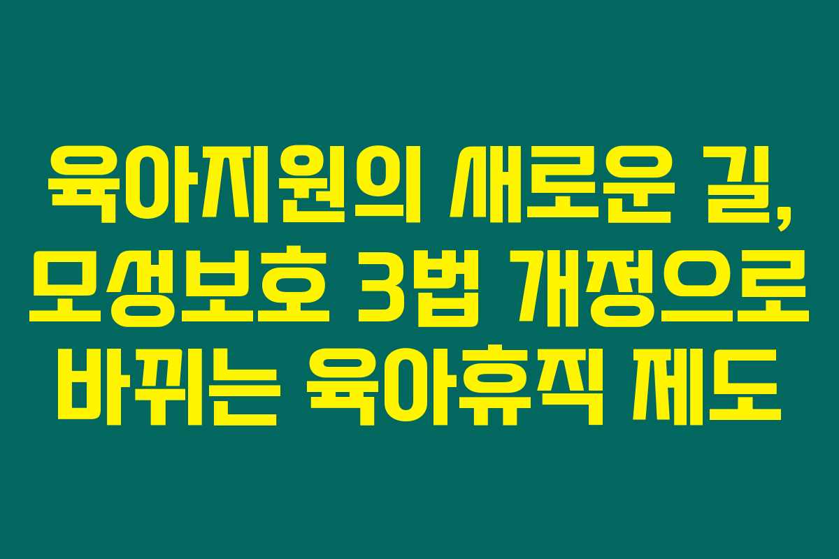 모성보호 3법 개정에 대한 정보는 매우 중요하답니다. 제가 직접 확인해본 결과, 이 개정이 임신과 출산을 준비하는 많은 부모들에게 실질적인 도움이 될 거라고 믿어요. 육아휴직 급여와 기간의 변화는 저처럼 부모 역할을 하는 사람들에게 큰 변화를 가져올 것으로 보입니다.