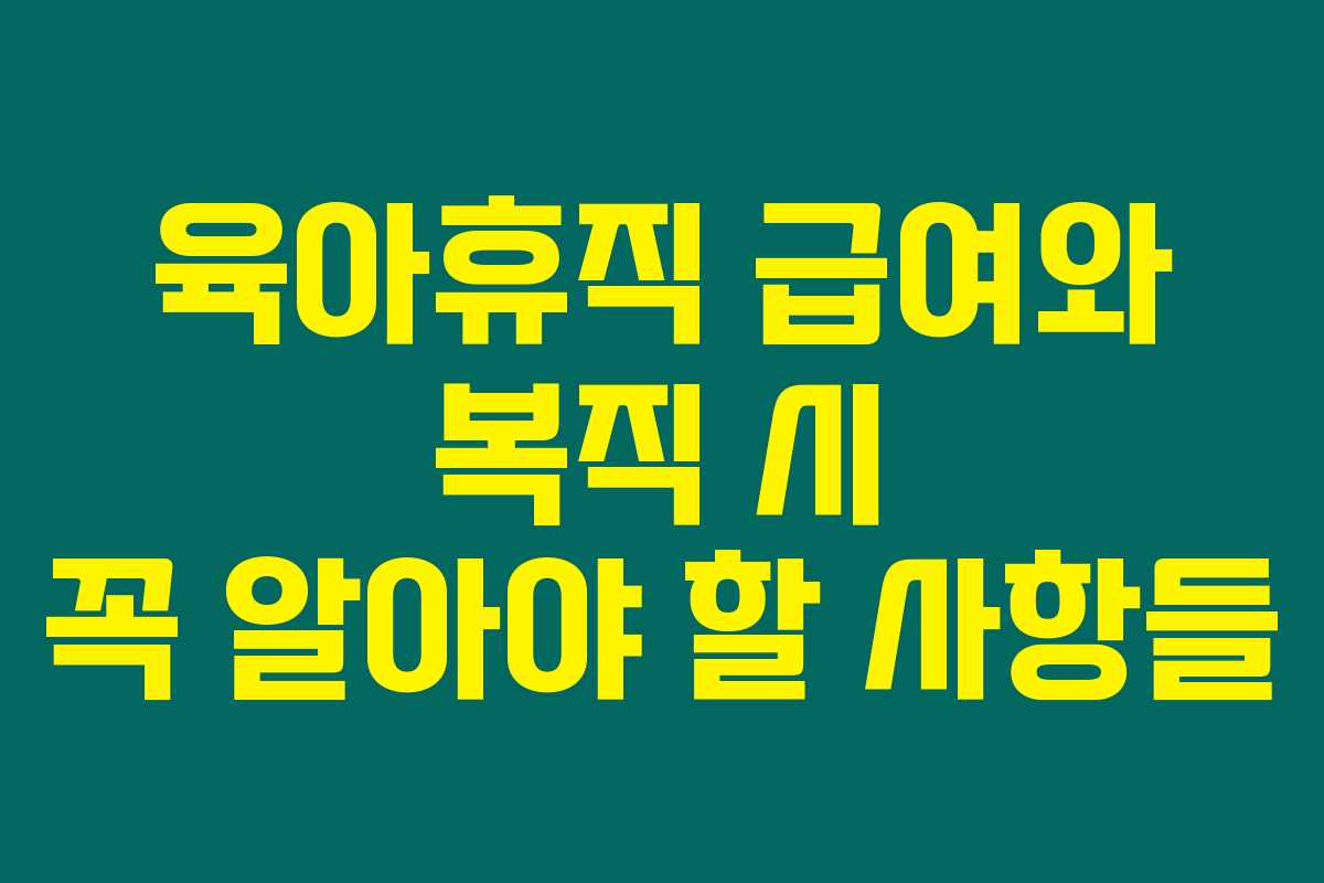 제가 직접 경험해본 결과로는 육아휴직은 신생아를 둔 부모들에게 매우 중요한 제도이지만, 유급휴가를 놓치거나 복직 시에 문제가 생길까 걱정하는 분들이 많습니다. 이번 글에서는 육아휴직 급여와 복직 시 유의해야 할 사항을 상세히 알아보겠습니다.