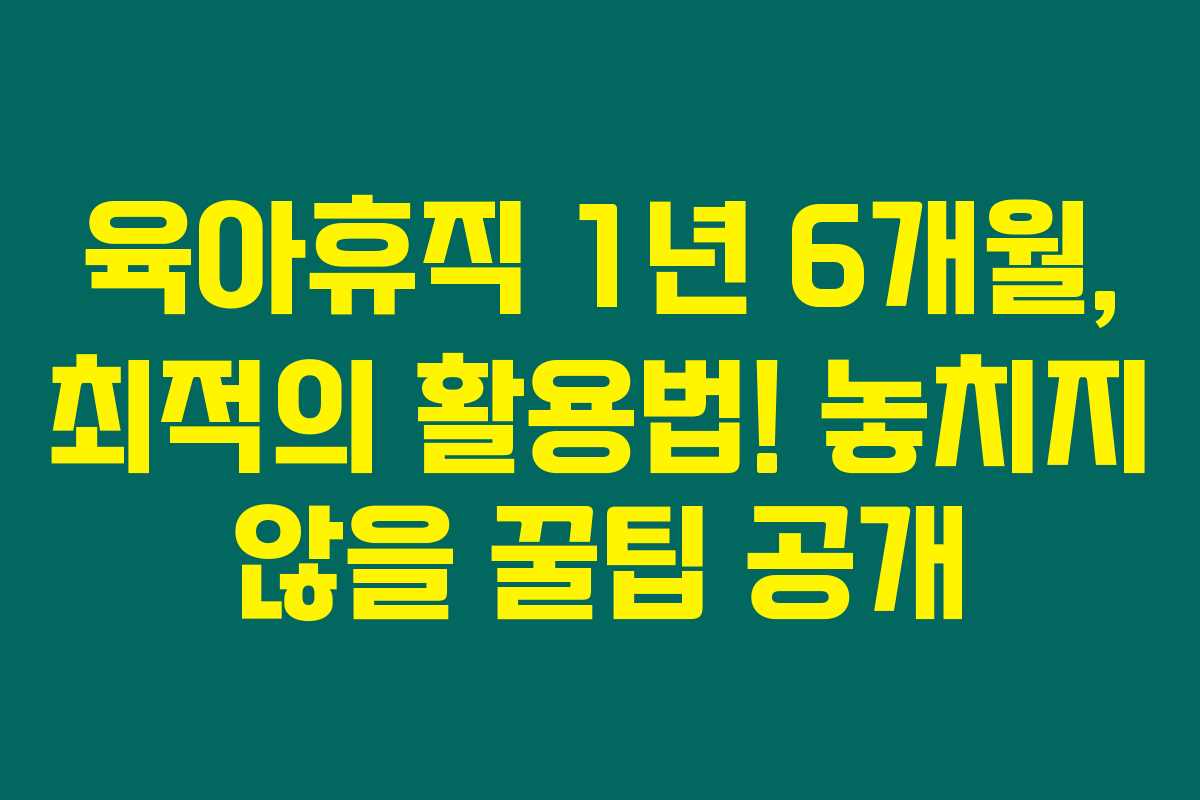 제가 직접 경험해본 바로는 육아휴직을 어떻게 활용하느냐에 따라 부모와 아이 모두의 시간이 더욱 알차고 소중해질 수 있습니다. 육아휴직 1년 6개월을 어떻게 하면 잘 보낼 수 있는지에 대해 자세히 알아보겠습니다. 다양한 방법과 팁을 통해 육아와 직장 모두를 잘 챙기는 방법에 대해 알아보세요.
