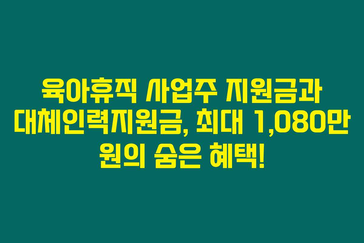 제가 직접 경험해본 결과로는, 육아휴직 사업주 지원금과 대체인력지원금은 중소기업들에게 정말 큰 도움이 되는 제도입니다. 많은 사업주들이 복잡한 제도 때문에 지원금을 놓치는 경우가 많지만, 이 글을 아래를 읽어보시면 이 두 제도의 중요성과 신청 방법을 쉽게 이해하실 수 있을 거예요.