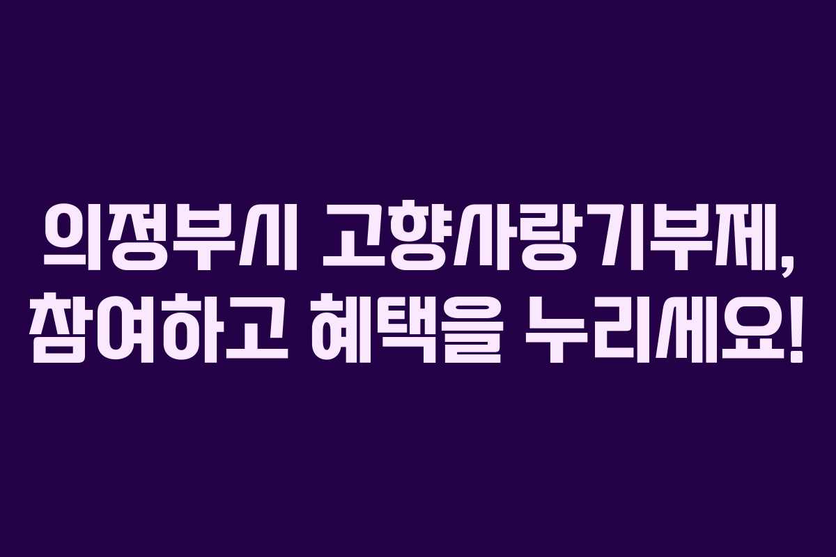 의정부시의 고향사랑기부제에 참여하면 다양한 혜택이 기다리고 있습니다. 기부를 통해 세액 공제를 받을 수 있으며, 추가로 답례품도 제공받을 수 있습니다. 이 제도는 지역 사회에 기여할 수 있는 좋은 기회입니다.