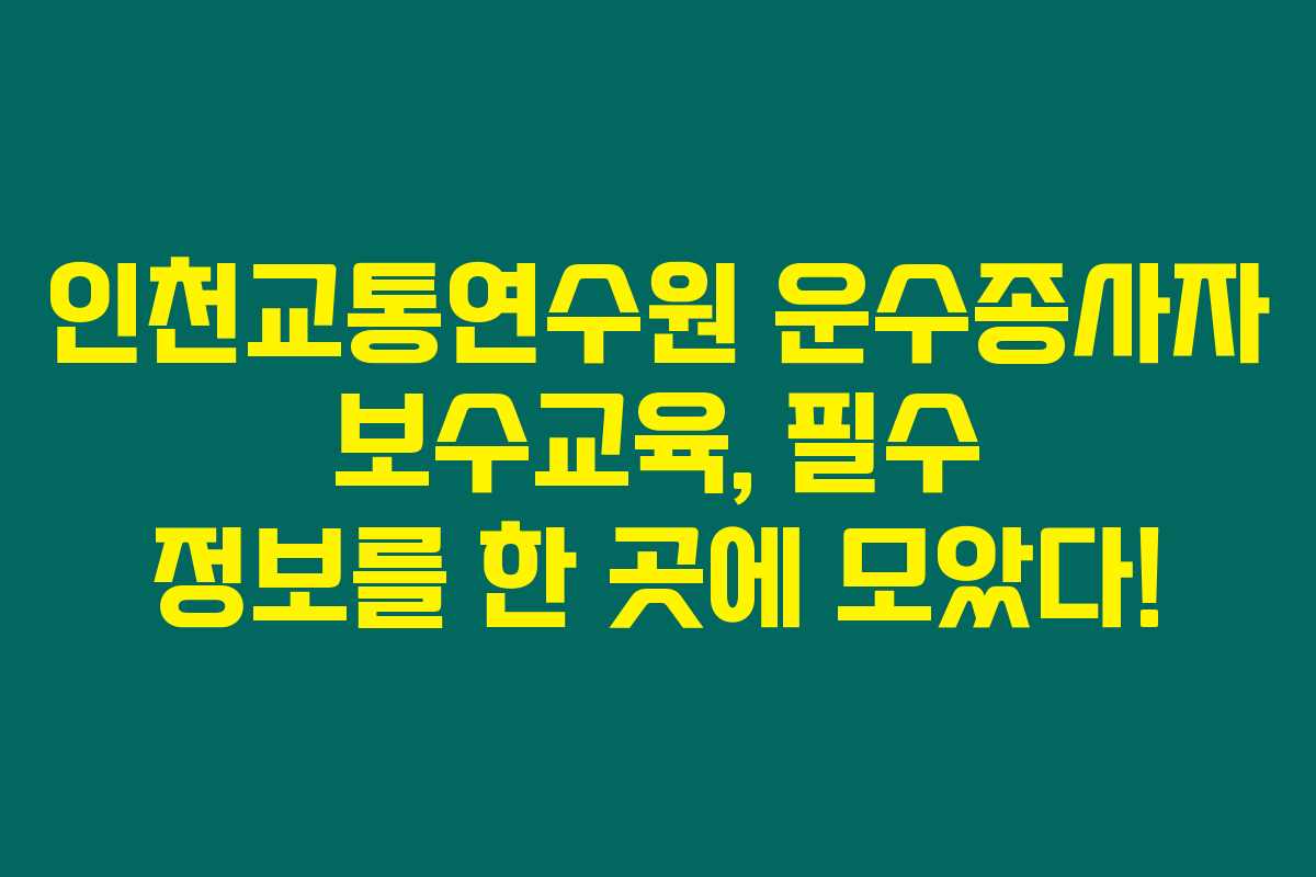 제가 직접 알아본 바로는, 인천교통연수원에서 제공하는 운수종사자 보수교육은 여객 및 화물 운송 종사자들에게 필수적입니다. 이 교육은 의무사항이며, 특정 조건을 충족하는 경우 면제할 수 있습니다. 아래를 읽어보시면 이 교육의 대상자 및 면제자, 예약 신청 방법에 대한 주요 정보가 정리되어 있습니다.