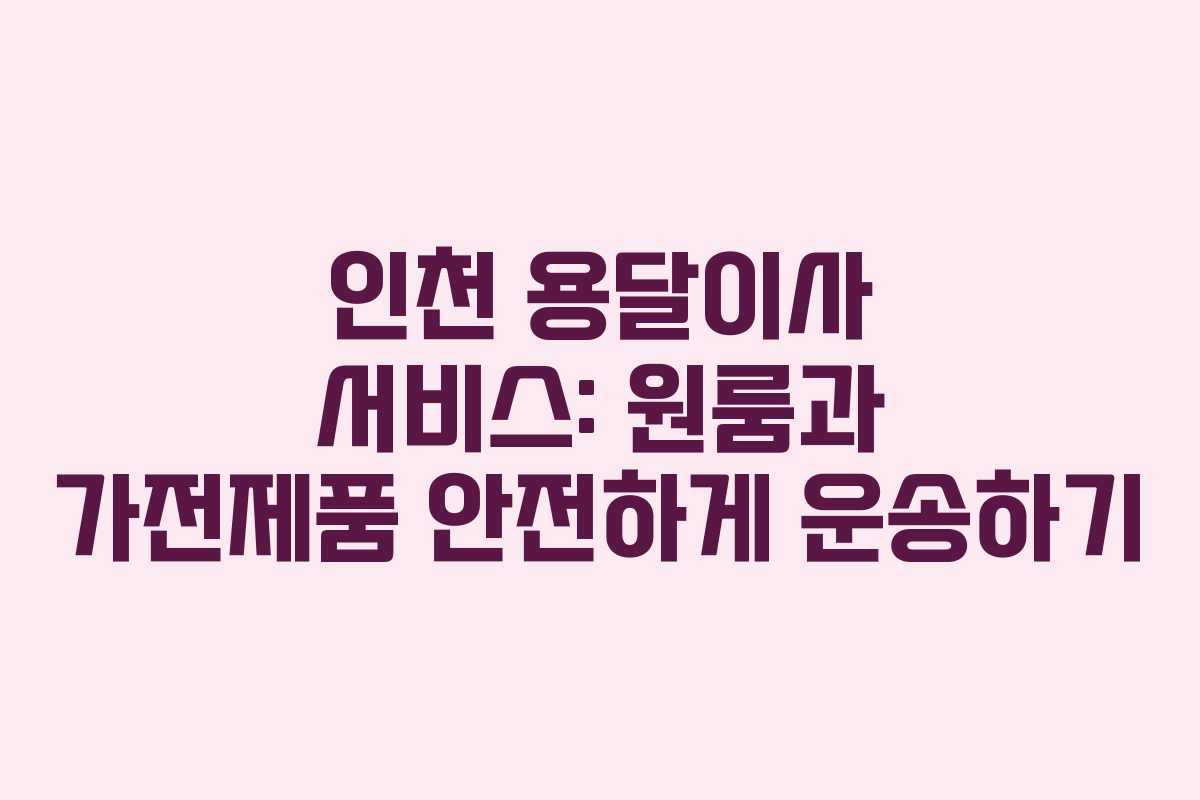 인천 용달이사 서비스: 원룸과 가전제품 안전하게 운송하기