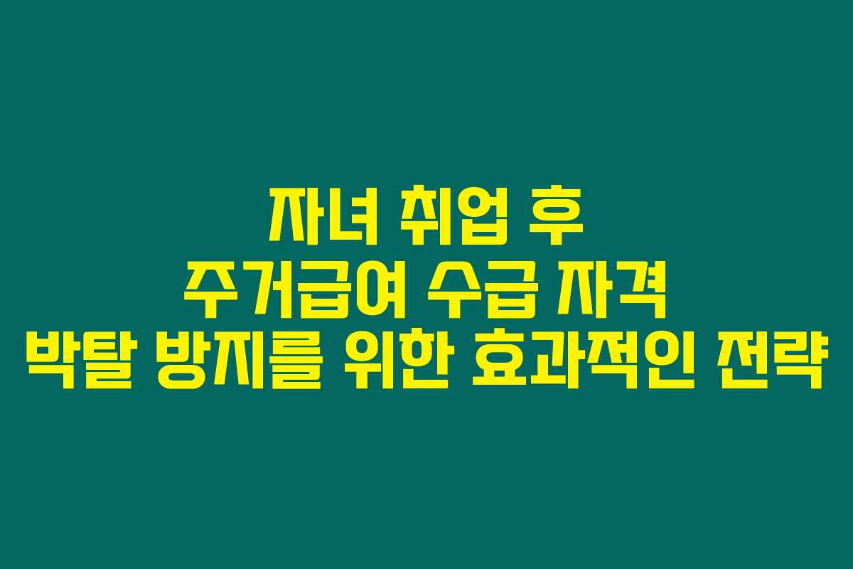 자녀 취업 후 주거급여 수급 자격 박탈 방지를 위한 효과적인 전략