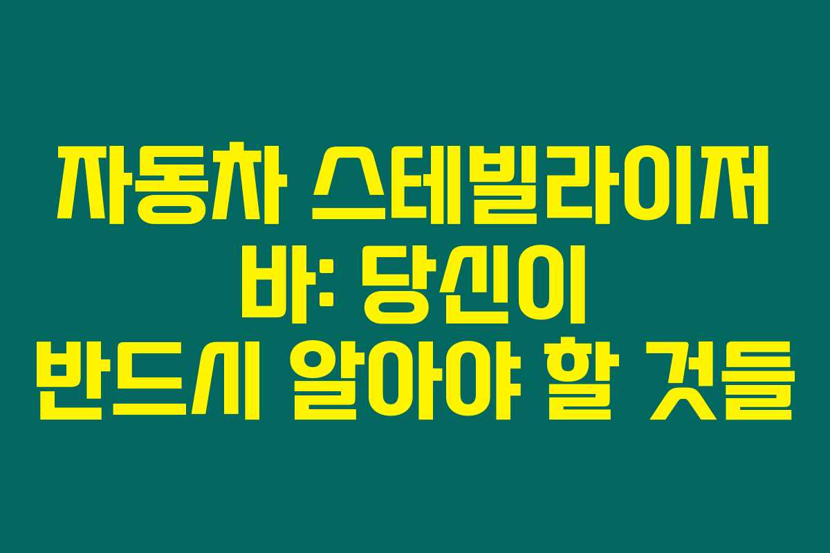 자동차의 스테빌라이저 바는 핸들링과 안전에 중요한 역할을 하는데요. 안 쓰는 사람은 있어도 제대로 알고 있는 분이 얼마나 될까요? 스테빌라이저 바가 어떻게 작용하는지 알고 싶으시면 아래를 읽어보세요.