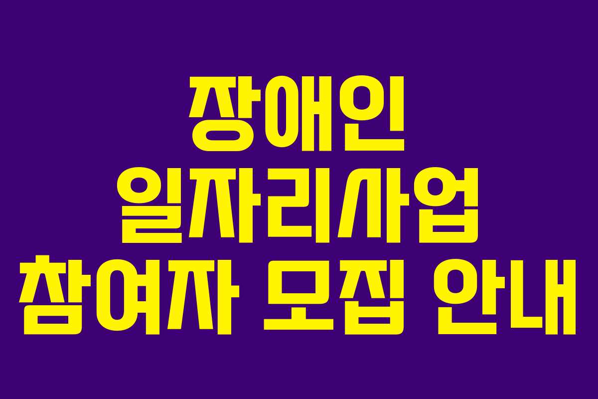 장애인의 사회참여를 확대하고 소득 보장을 위한 장애인 일자리사업에 참여할 신청자를 모집합니다. 본 사업은 장애인이 자립적인 생활을 할 수 있도록 지원하는 프로그램으로, 자세한 내용은 아래를 참고하시기 바랍니다.