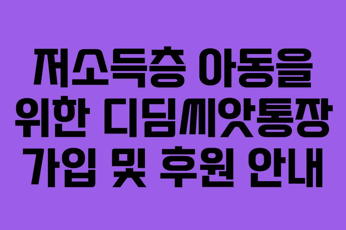 디딤씨앗통장은 저소득층 아동이 미래를 준비할 수 있도록 돕는 자산형성지원사업입니다. 아동의 보호자나 후원자가 매월 일정 금액을 저축하면, 정부에서 1:1 매칭 지원금을 제공하여 아동의 자립을 돕습니다.