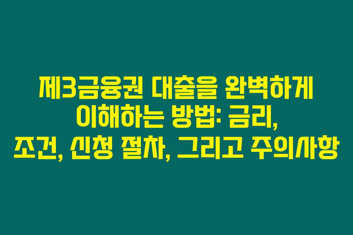 제가 직접 조사해본 결과로는 제3금융권 대출은 신용등급이 낮거나 대출이 어려운 분들에게 대출 기회를 제공하지만, 여러 위험요소가 존재하는 금융서비스랍니다. 아래를 읽어보시면 제3금융권 대출의 전체적인 개념, 금리, 신청 방법 및 주의사항을 자세히 정리해 두었어요.