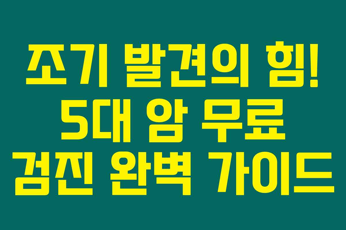 5대 암 무료 검진은 국민건강보험공단에서 시행하는 국가암검진사업의 일환으로, 국내에서 많이 발생하거나 조기 발견이 중요한 암에 대한 정기적인 검진을 제공합니다. 아래의 5대 암이 해당되며, 각 암의 조기 발견을 통한 치료 효율은 매우 높습니다.