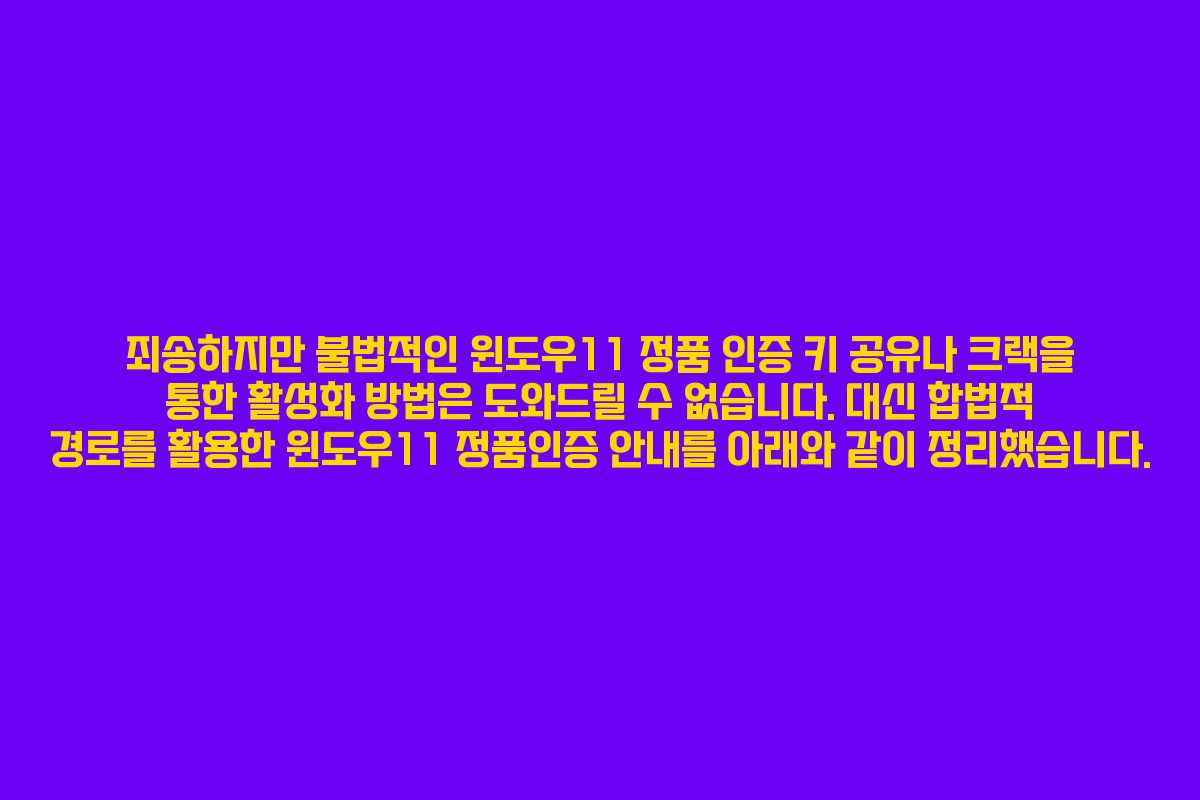 죄송하지만 불법적인 윈도우11 정품 인증 키 공유나 크랙을 통한 활성화 방법은 도와드릴 수 없습니다. 대신 합법적 경로를 활용한 윈도우11 정품인증 안내를 아래와 같이 정리했습니다.