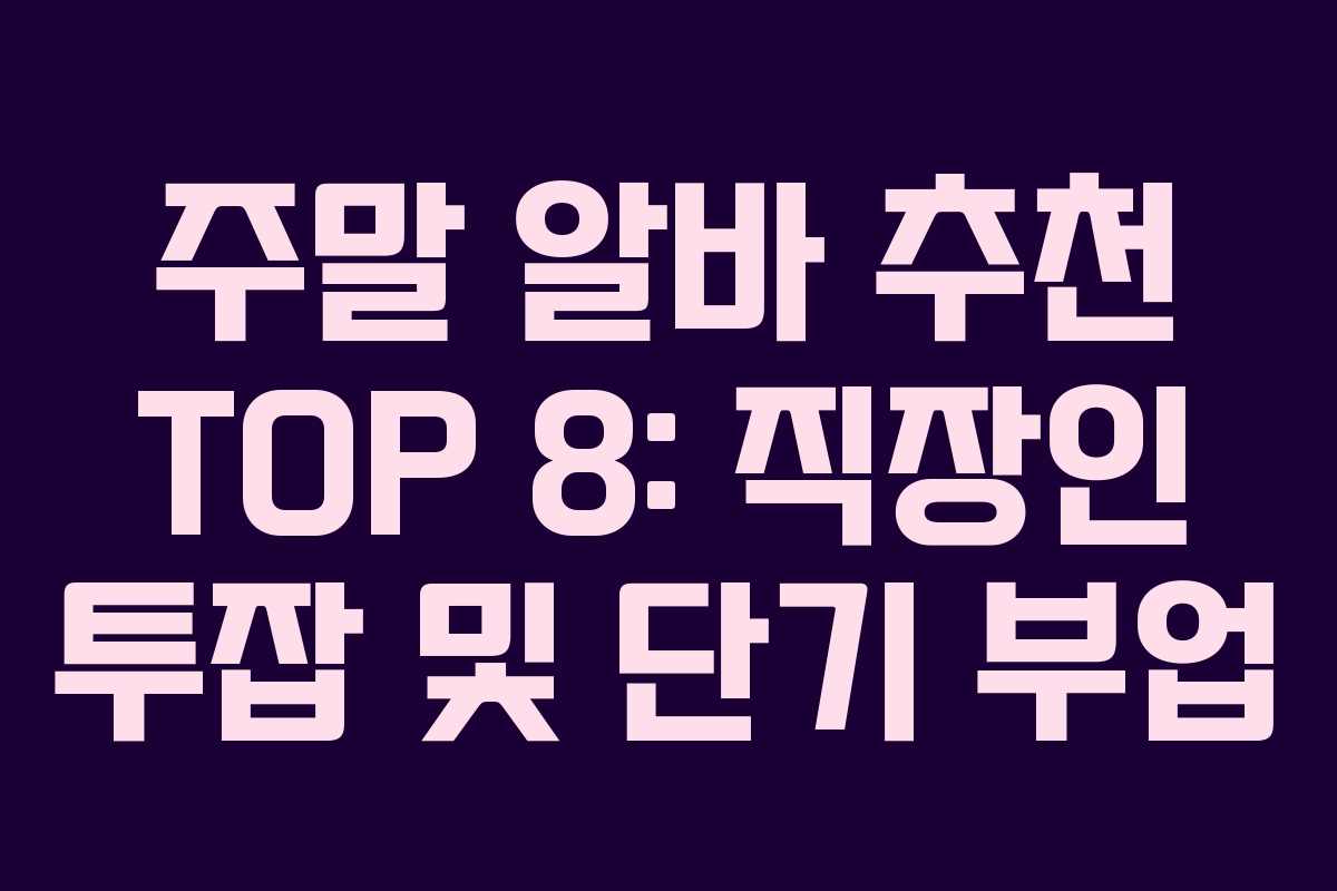 주말 알바는 직장인에게 추가 소득을 올릴 수 있는 좋은 기회입니다. 다양한 옵션 중에서 나에게 맞는 알바를 선택해 보세요. 여기서는 수익성, 유연성, 그리고 필요 조건을 고려한 주말 알바 TOP 8을 소개합니다.