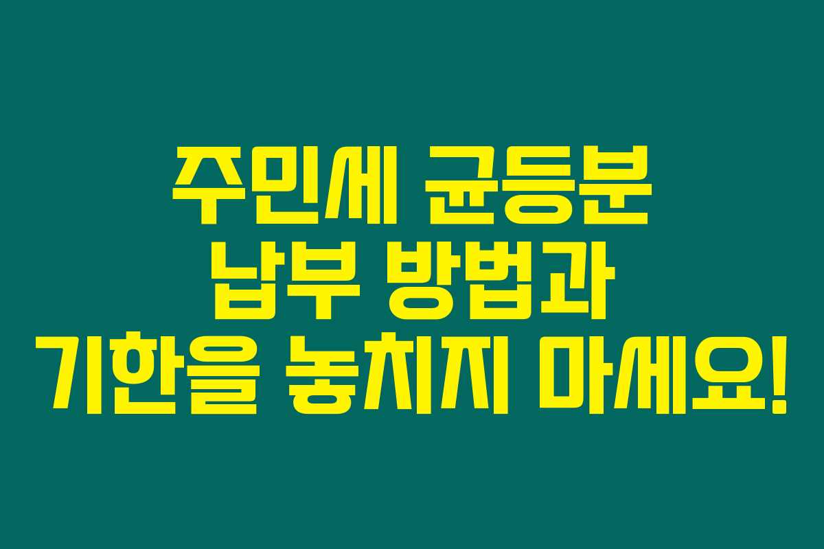 주민세 균등분 납부는 이렇게 다양한 방법과 주의사항이 있습니다. 기한을 놓치지 않고, 적절하게 납부하셔서 추가 비용이 발생하지 않도록 신경 써 주세요. 더 궁금한 점이 있다면 언제든지 아래 댓글로 질문해 주시면 됩니다~!