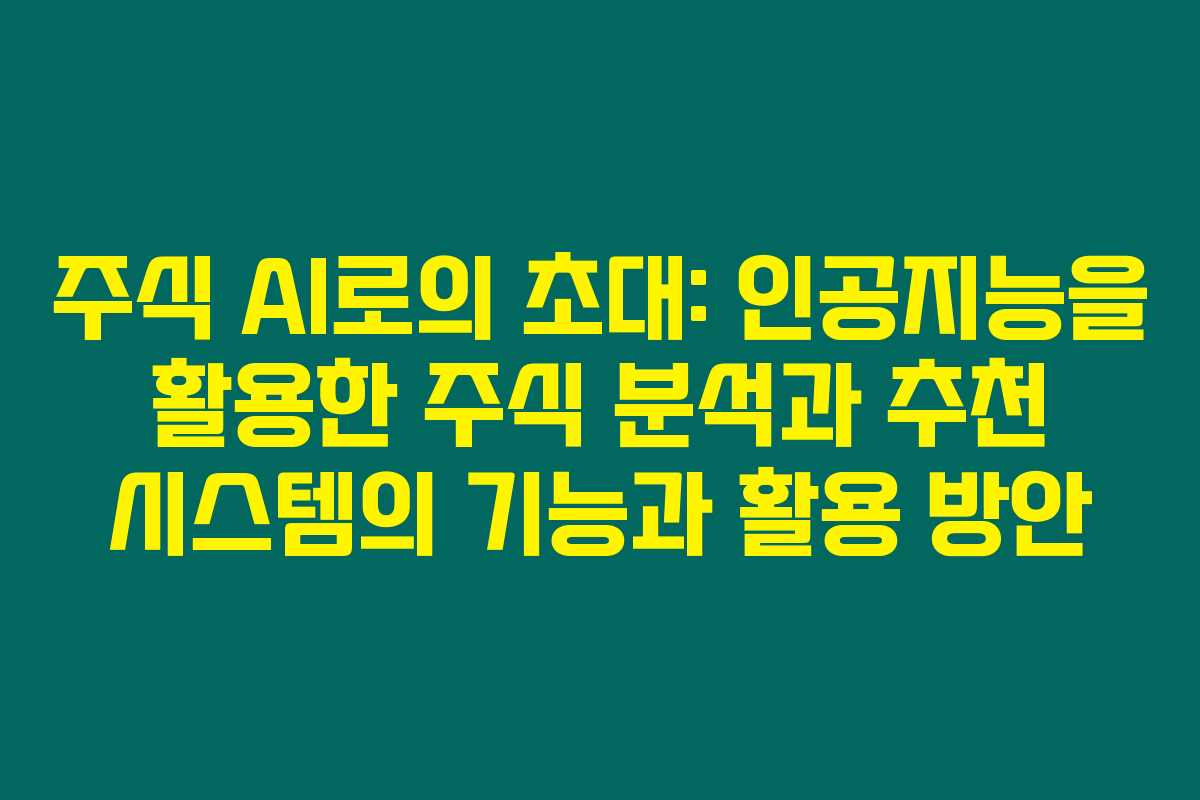 주식 AI로의 초대: 인공지능을 활용한 주식 분석과 추천 시스템의 기능과 활용 방안