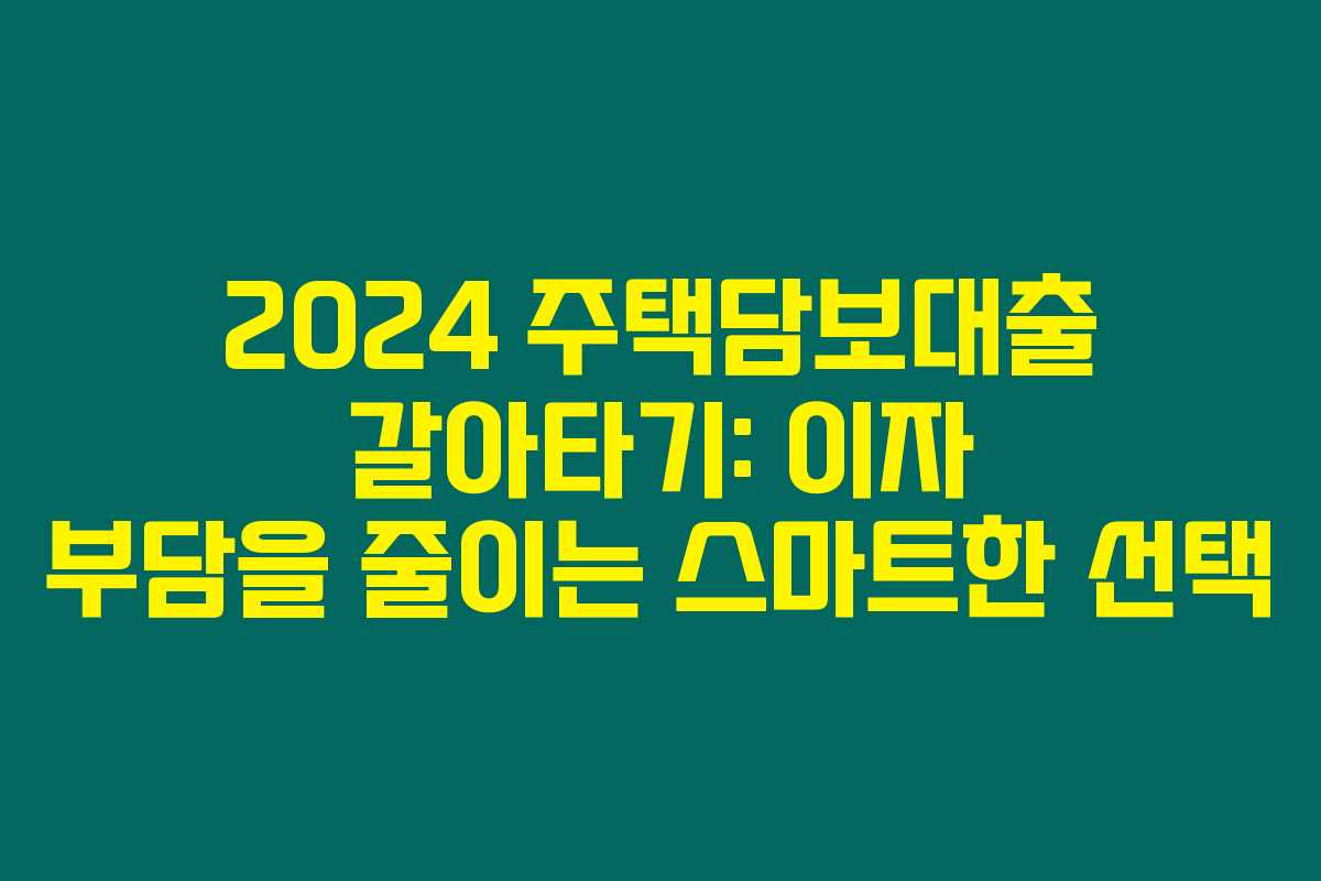 2024 주택담보대출 갈아타기: 이자 부담을 줄이는 스마트한 선택