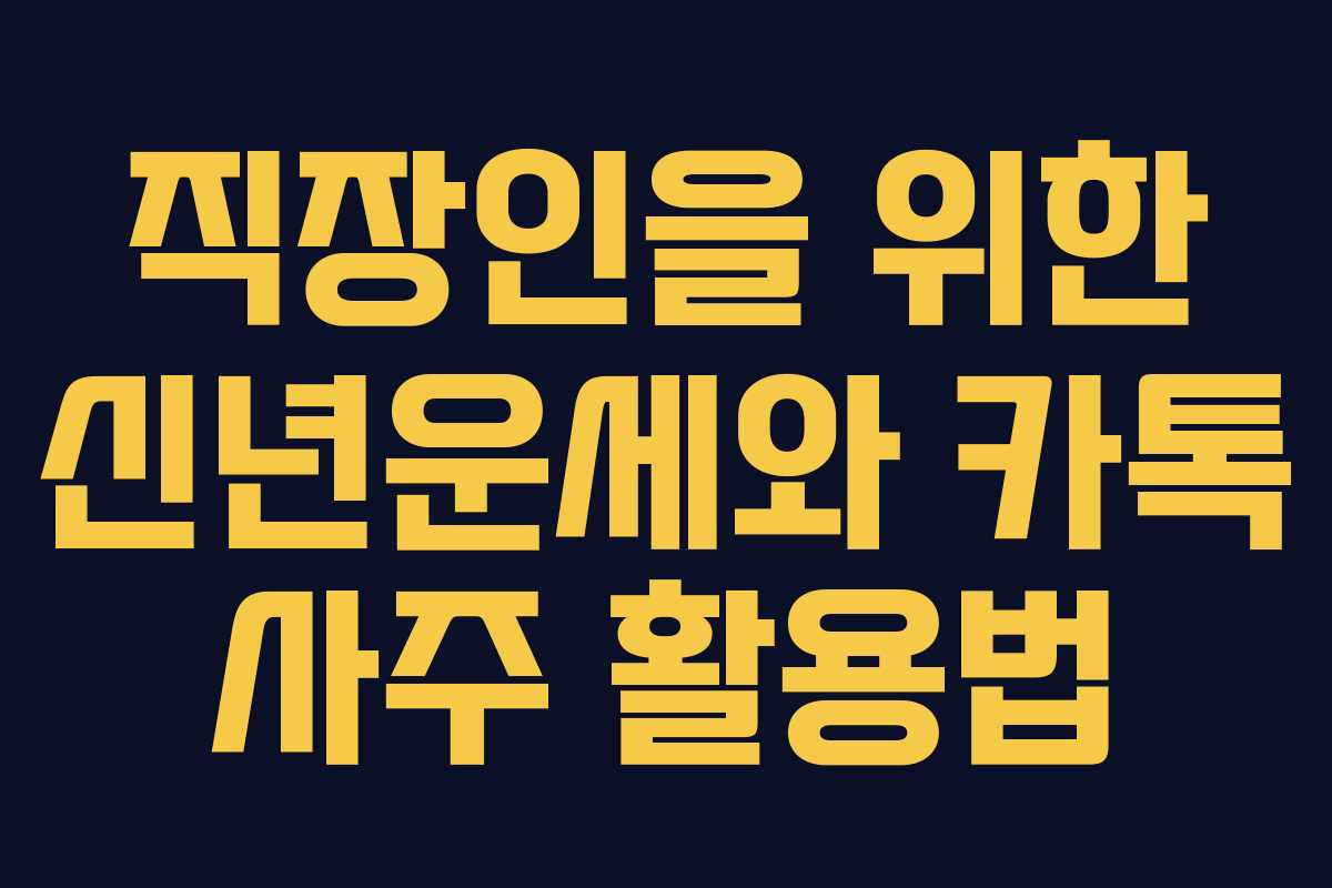 카톡 사주는 직장인들에게 유용한 방법으로, 신년운세와 개인적인 고민을 동시에 해결할 수 있는 기회를 제공합니다. 올해도 많은 이들이 자신의 운명을 점치고, 새로운 시작을 다짐하는 계기가 되길 바랍니다.