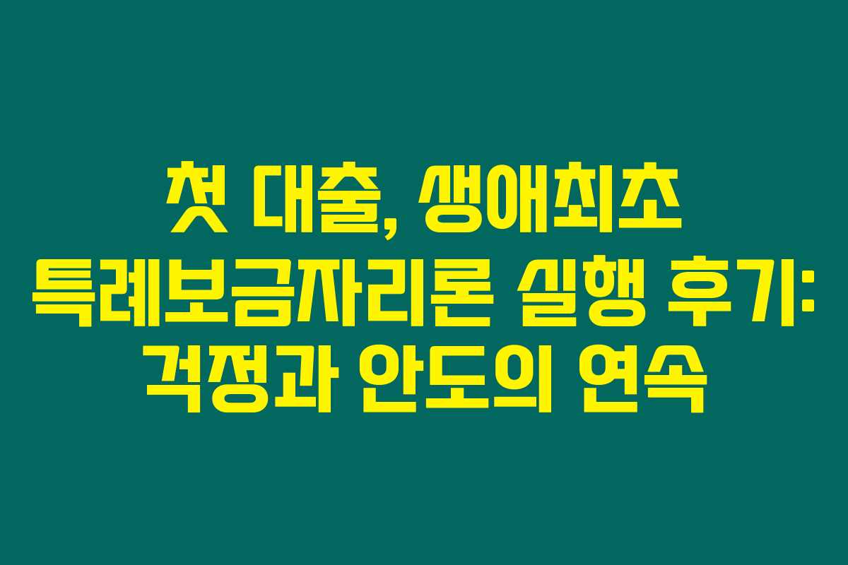 제가 직접 실행해 본 생애최초 특례보금자리론은 여러 번의 걱정과 불안 속에서도 큰 도움을 주었어요. 대출을 받았지만 한편으로는 언제 상환할지 걱정도 되지만, 저의 첫 대출 경험은 그렇게 끝이 났답니다. 앞으로의 삶에 대해 긍정적으로 바라보게 되었어요.